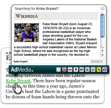 We match keywords to suitable content and the page's theme, connecting users with subject matter that they're already interested in, along with entertainment from their favorite sources: Wikipedia, Flickr, YouTube, Twitter and more.